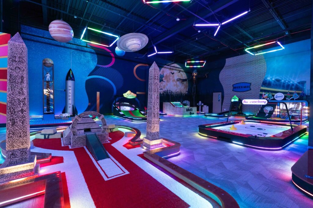 ParTee Shack became a household name through a combination of clever marketing, innovation, and a relentless focus on creating memorable experiences. Each course was designed and built internally, with the company’s own warehouse and manufacturing team responsible for its signature obstacles: shuffleboard, photobooths, basketball hoops, roulette tables, ziplines, skateboard mazes, and more. Every course is custom-built with motors, moving parts, and creative engineering that have set a new standard for the family entertainment space.